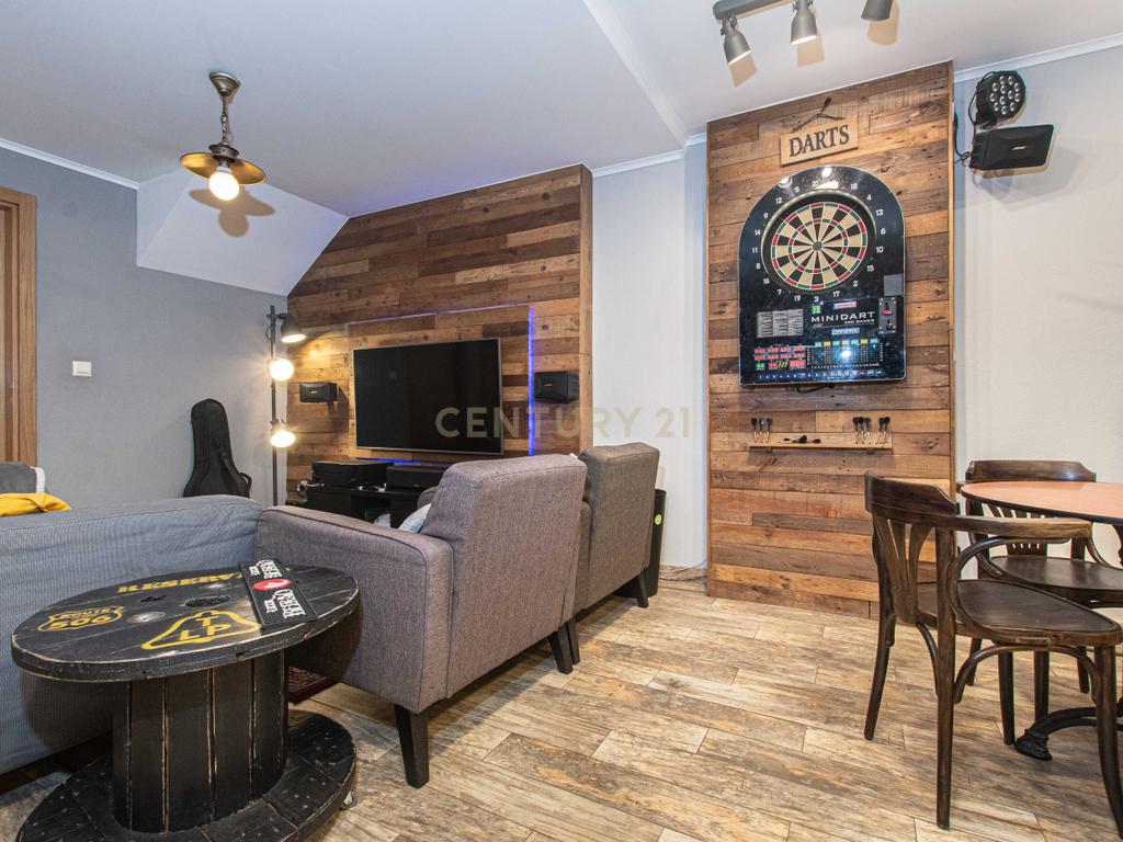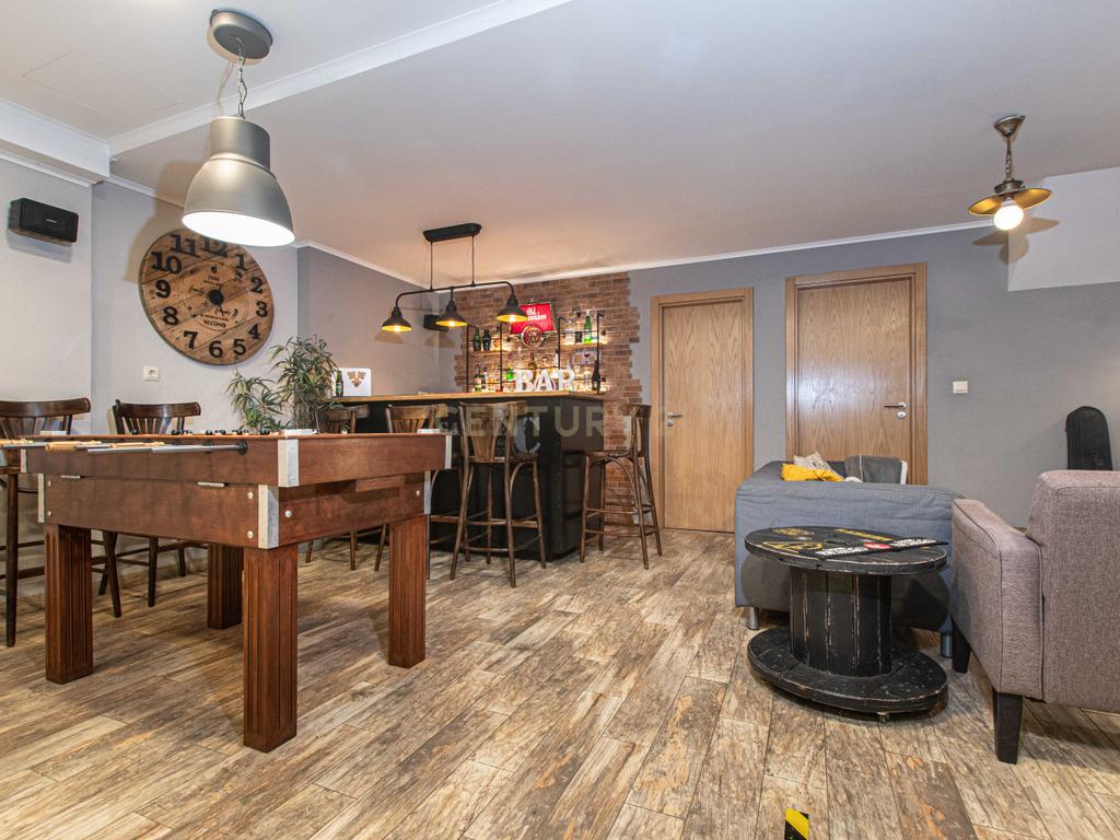 Muito mais do que uma simples garagem, este espaço foi cuidadosamente transformado num verdadeiro ambiente de lazer.