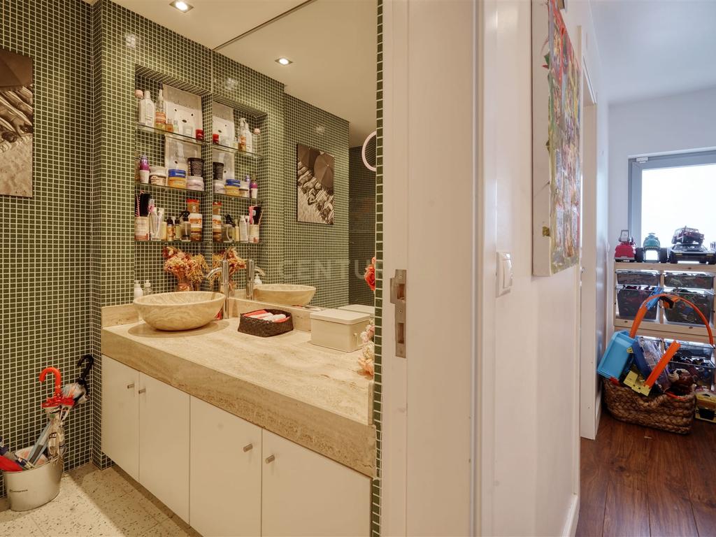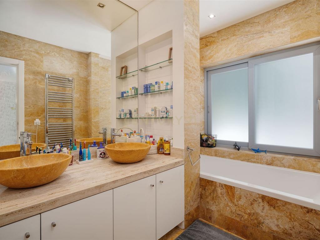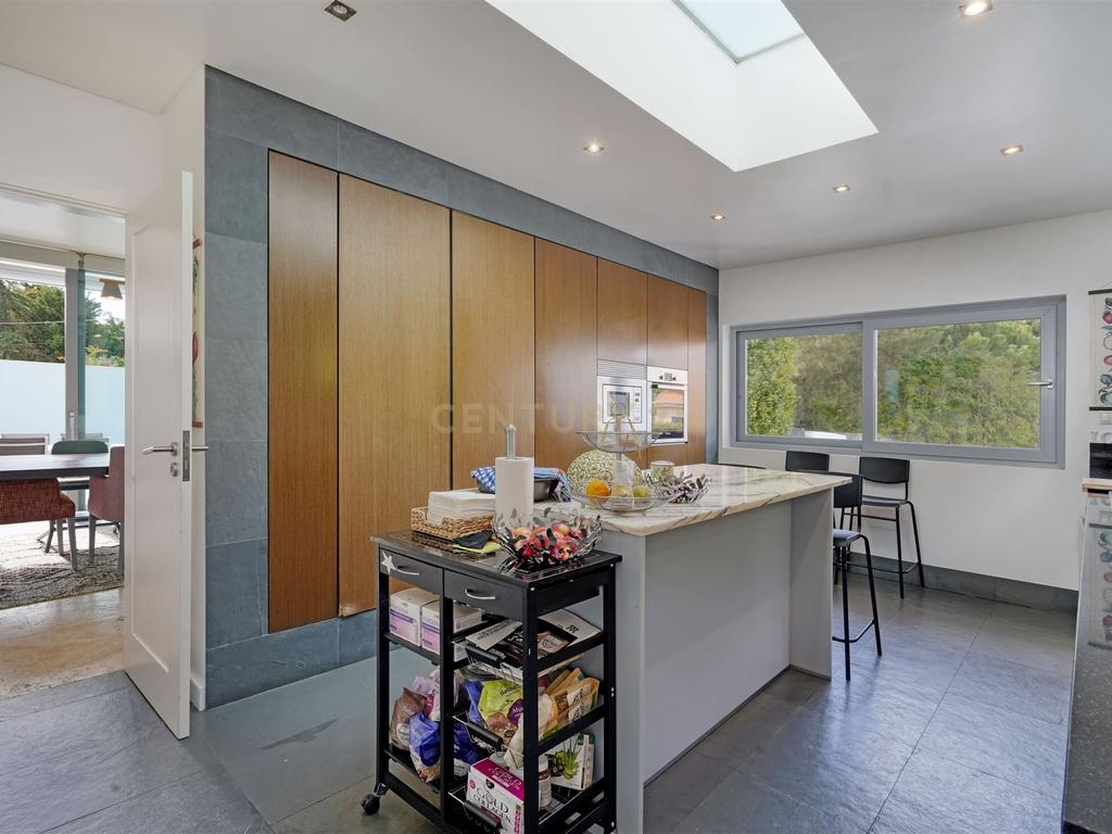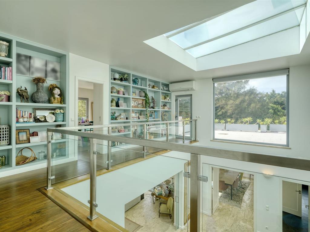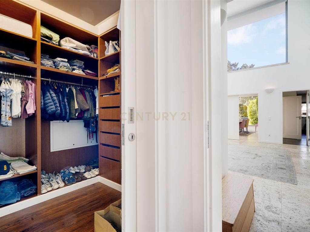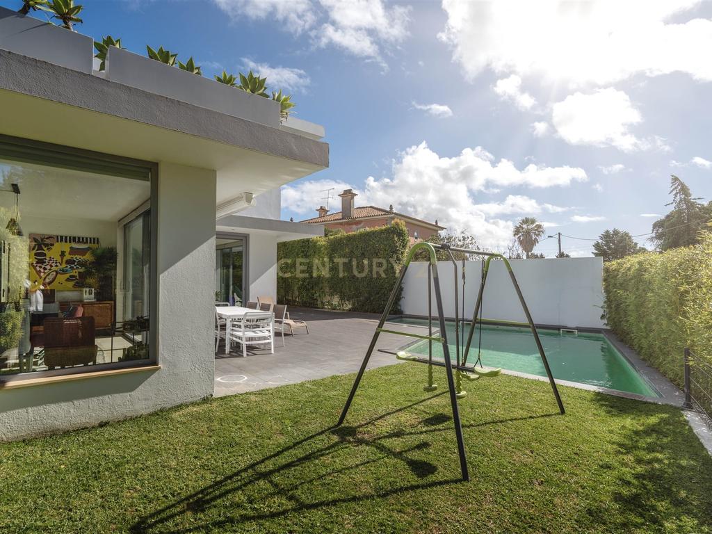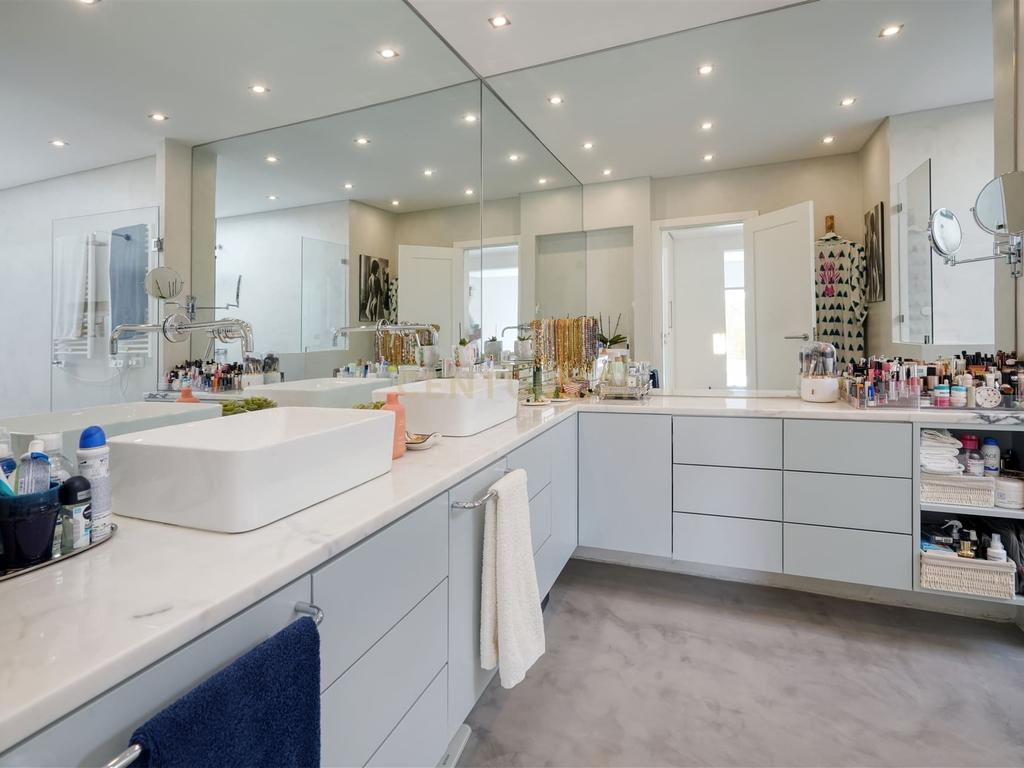 No rés-do-chão, um impressionante átrio de entrada de 6 metros com altura dupla cria uma sensação imediata de sofisticação e amplitude. A grande sala de estar, organizada em dois ambientes distintos, liga-se harmoniosamente à zona de jantar, com acesso direto ao jardim e à piscina que permite a entrada abundante de luz natural. A cozinha moderna, com uma ilha central, combina design e funcionalidade, com ligação direta ao exterior. Este piso tem também uma suite com closet, casa de banho com banheira, bem como duche de pé.