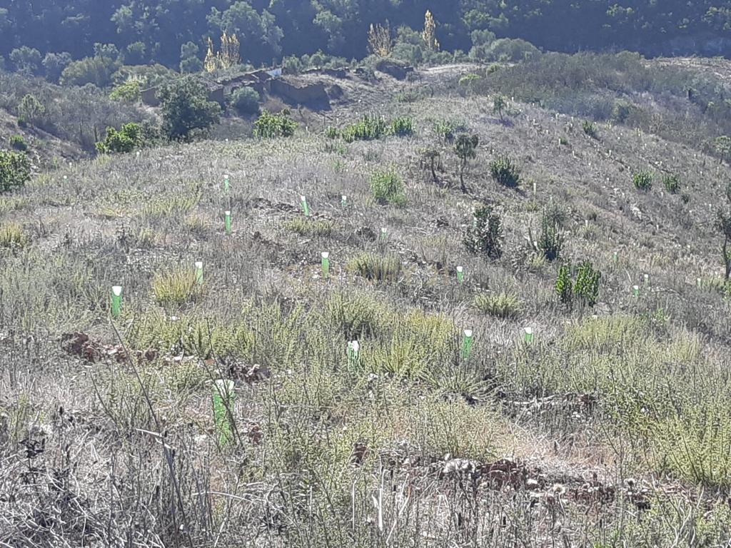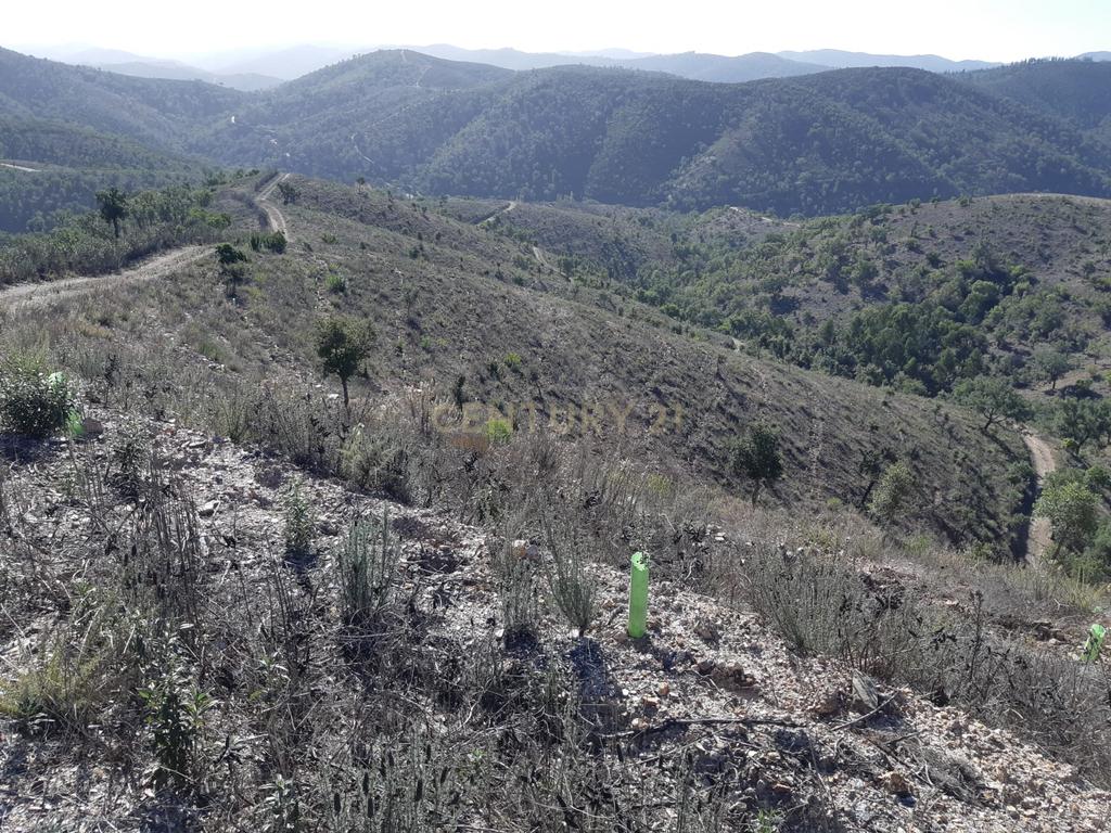 Conta com projeto de sobreiros plantados com 5 anos de idade na sua extensão e sobreiros adultos, e ruína isolada de 131.55m2.