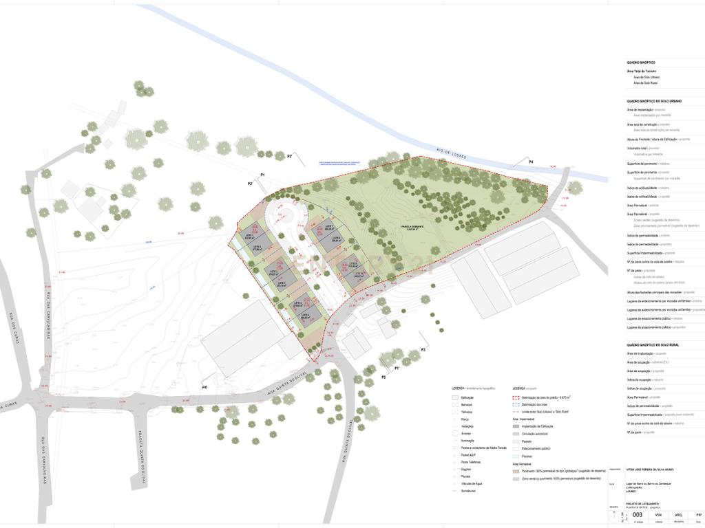 O projeto prevê a constituição de 10 lotes, destinados à construção de moradias com 3 pisos — dois acima da cota de soleira e um abaixo da cota de soleira.