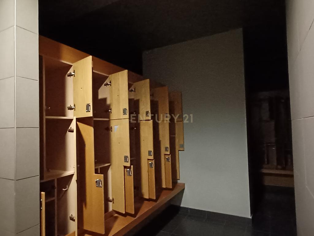 Piso 0: hall e receção, 2 instalações sanitárias, arrumos, cafetaria com copa e despensa, escritório com gabinete e zona ampla, copa e arrumos adicionais, balneários (masculinos, femininos e familiar), piscina, banho turco, sauna e spa com gabinetes, receção e sala de relaxamento;