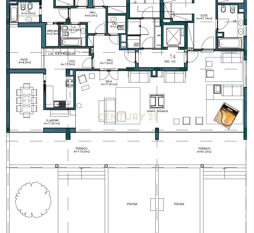 Com uma área total impressionante de 588 m², dos quais 236 m² são exteriores com piscina aquecida, ideal para momentos de lazer e convívio, esta oportunidade é verdadeiramente rara. O interior oferece 7 assoalhadas, 5 quartos, 5 casas de banho, 4 lugares de estacionamento e duas arrecadações com um total aproximado de 50 m². Uma experiência de vida inigualável, onde os apartamentos se destacam pela excelente exposição solar e pelas vistas extraordinárias sobre o rio.