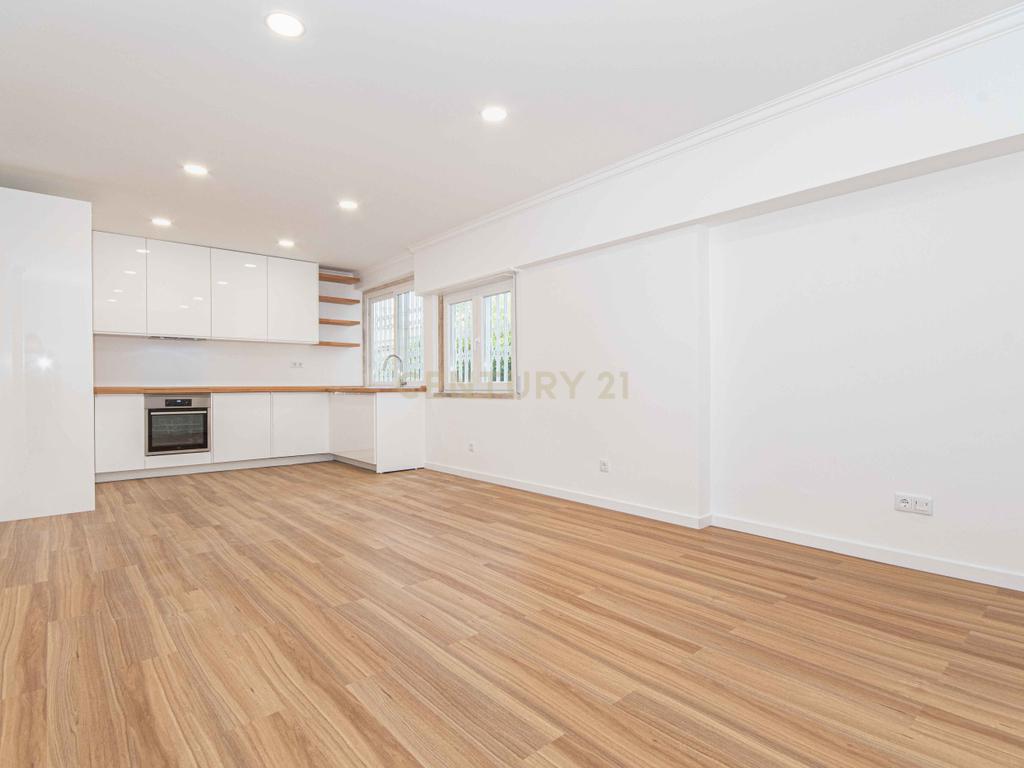 Apartamento T2 totalmente remodelado, com 64m2 de área bruta privativa inserido numa cave de prédio sem elevador.