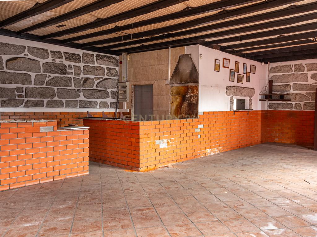 A loja conta com 3 salas amplas, 3 casas de banho e uma variedade de características, incluindo um armazém, espaço de armazenamento, sala de jogos e uma cozinha anexa. O espaço exterior é complementado por um jardim e uma área de churrasco, proporcionando um ambiente rústico e acolhedor.
