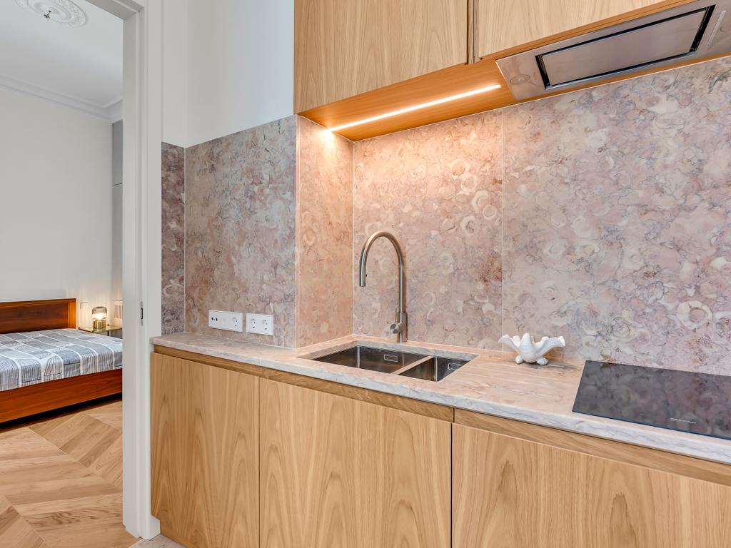 A cozinha, moderna e totalmente equipada, foi pensada para quem valoriza praticidade sem abrir mão do design contemporâneo.