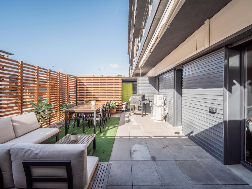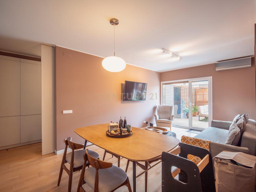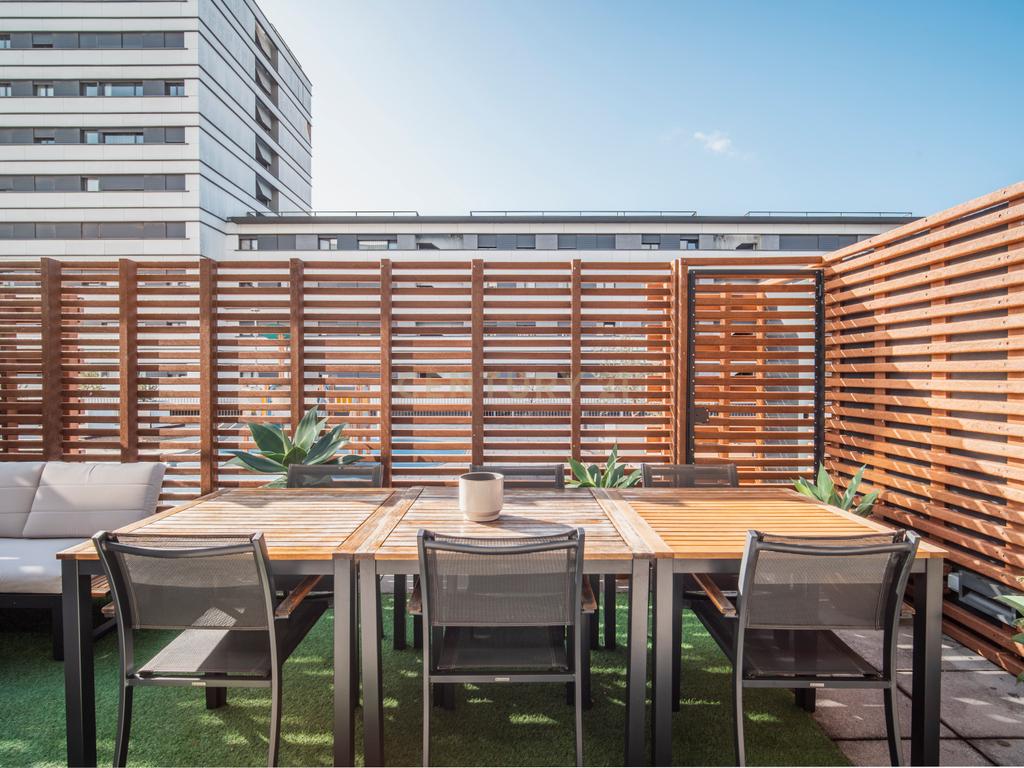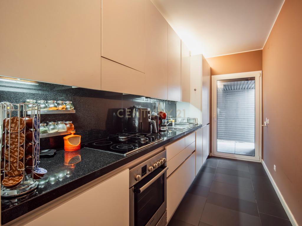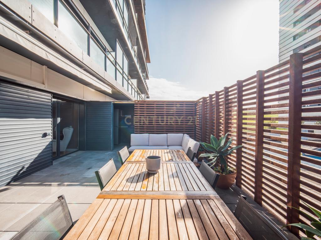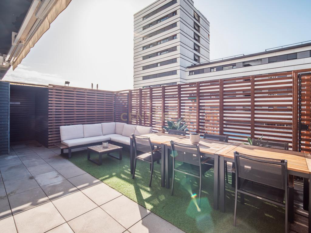 A cozinha encontra-se totalmente equipada e conta com uma elegante porta pivotante do chão ao teto, conferindo sofisticação e versatilidade ao ambiente. A sala ampla e luminosa prolonga-se para um extraordinário terraço privativo — um verdadeiro diferencial — ideal para refeições ao ar livre, momentos de convívio ou para criar uma zona lounge exterior com total privacidade.