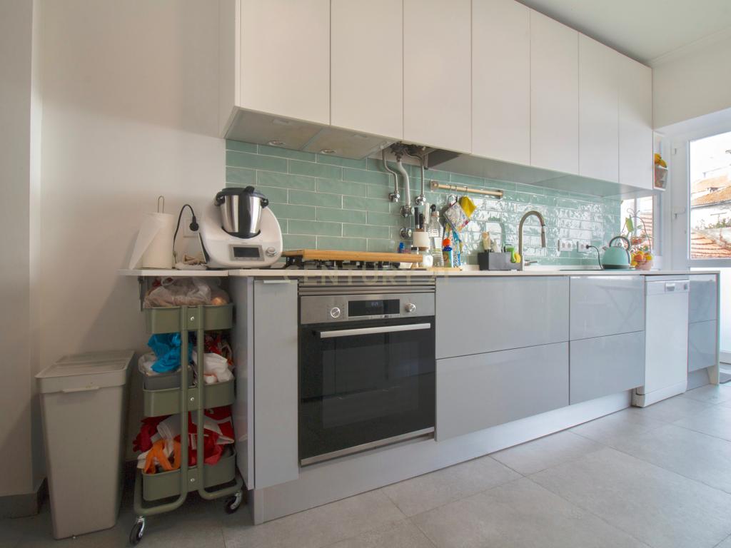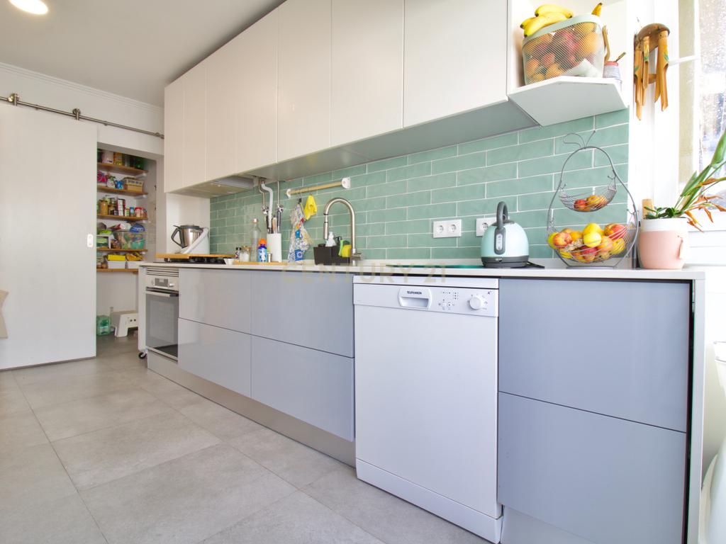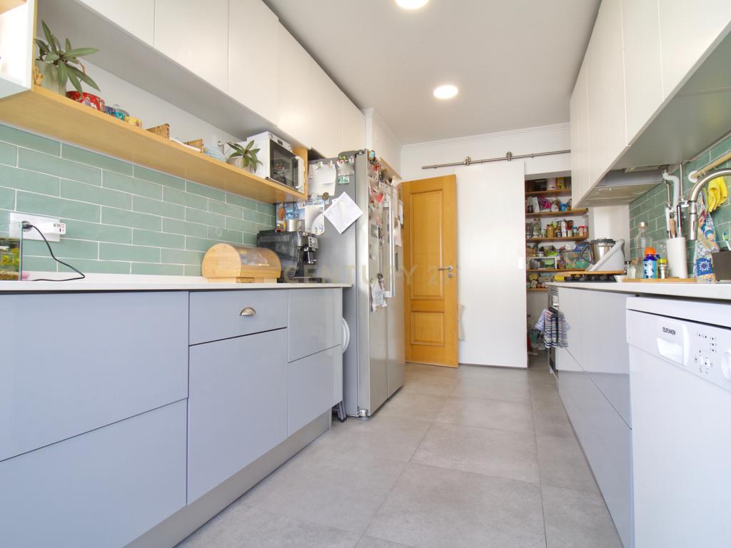 - Uma Cozinha de 12,40 m2 moderna e soalheira com gás canalizado, piso cerâmico antiderrapante e uma despensa integrada de 1 m2 onde existe um painel de telecomunicações que distribui cabos de rede e TV para toda a casa. Esta Cozinha tem pré-instalação para estores elétricos, se desejado.