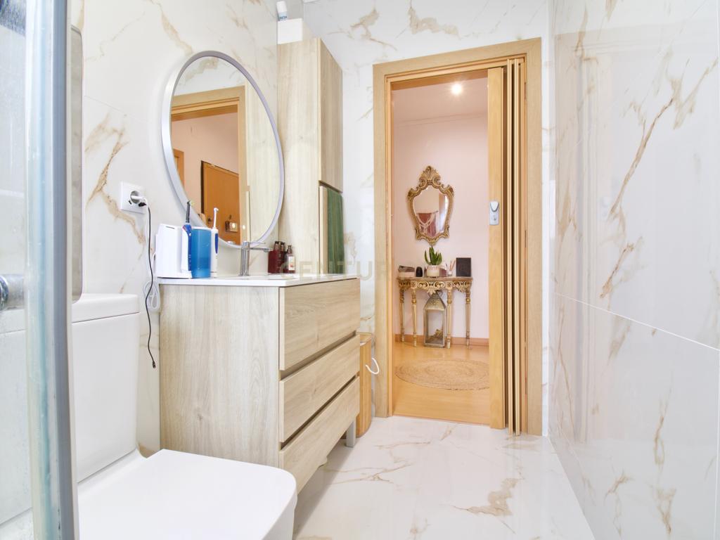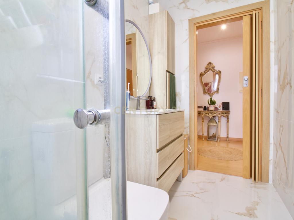 - Uma casa de banho de 3,70 m2 também renovada recentemente, com janela e cabine de duche, mármores e materiais Grohe.
