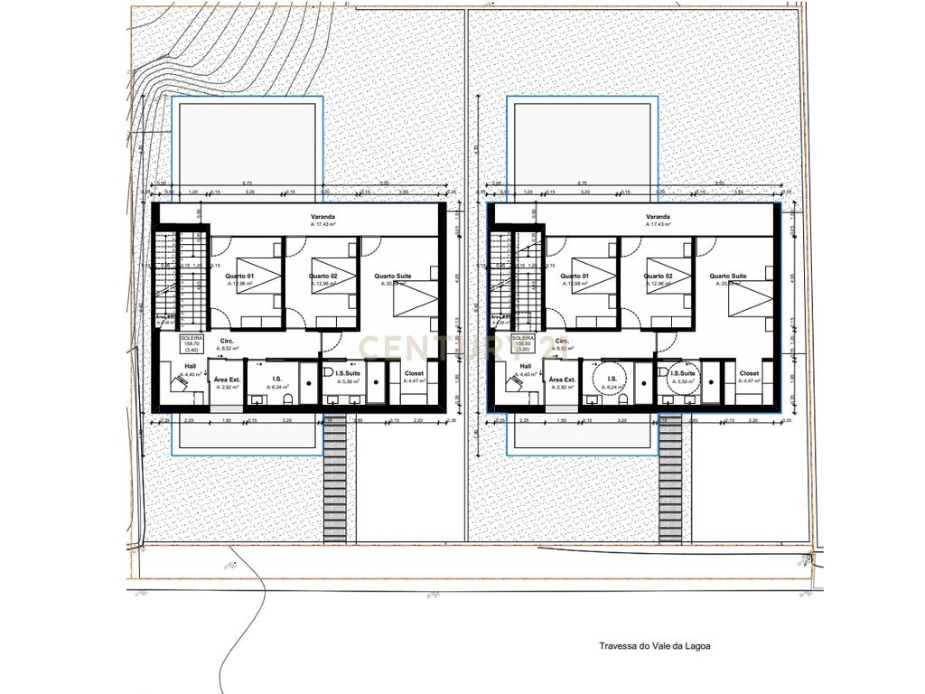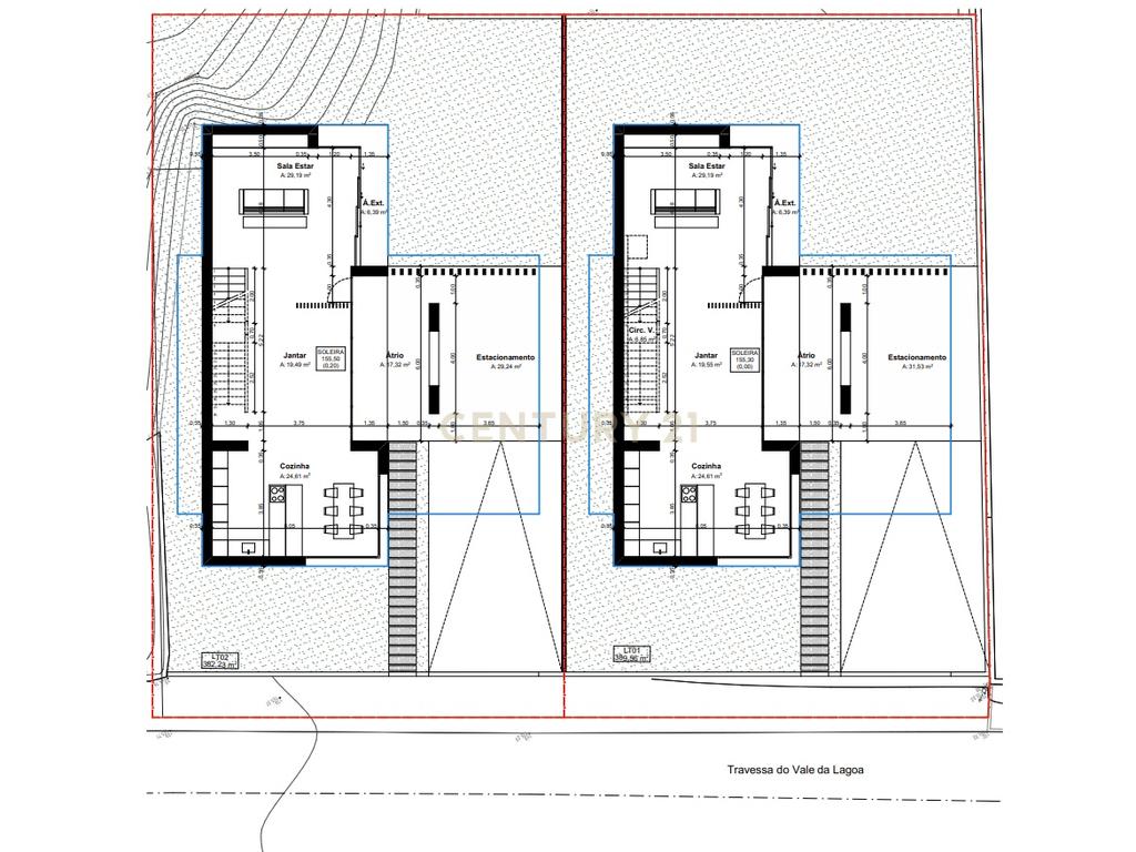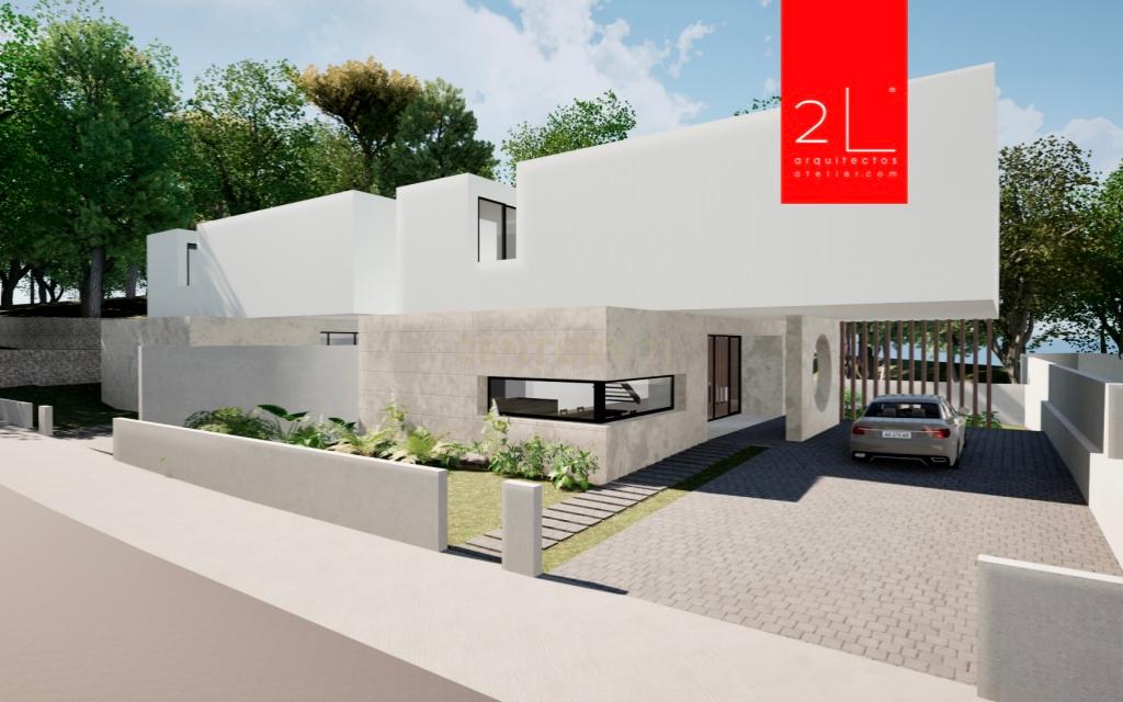 O terreno conta com projeto aprovado para a construção de uma moradia isolada, de arquitetura moderna e funcional, com dois pisos e uma área útil de 163,20 m². O projeto prevê:
