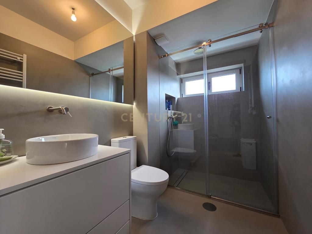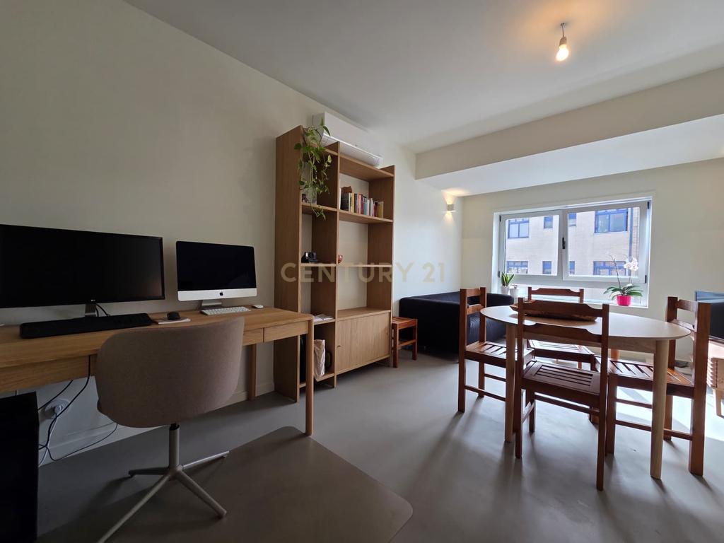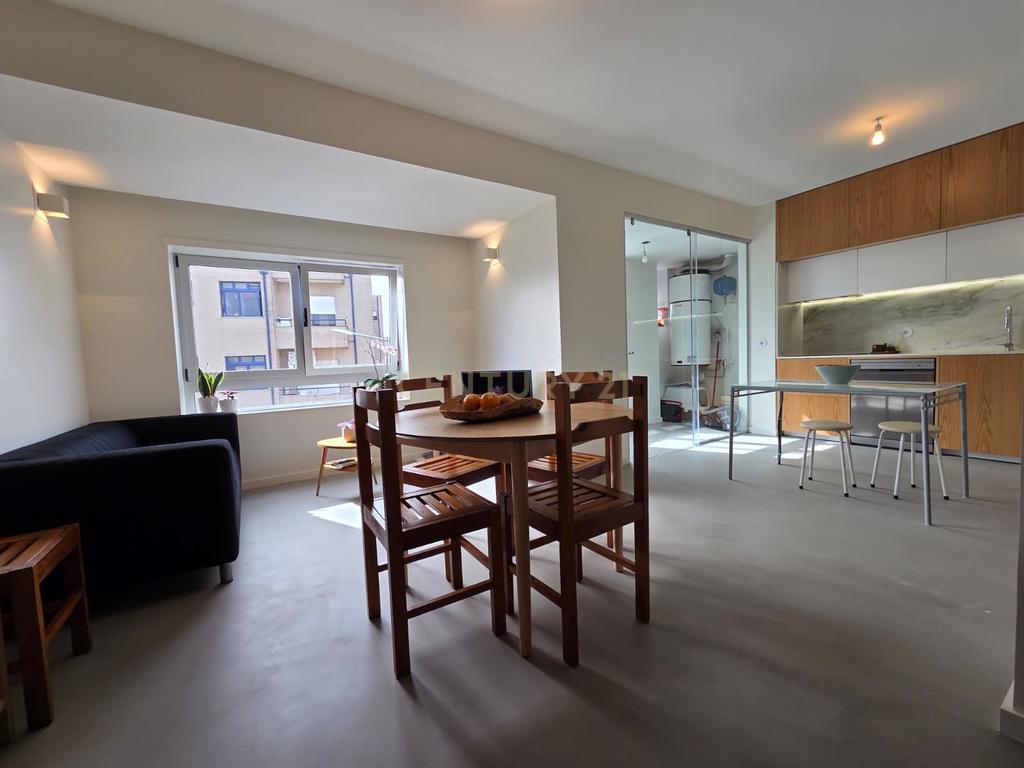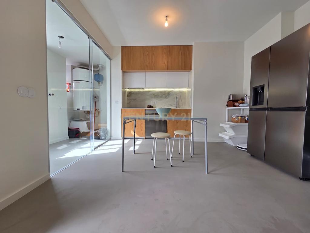 Este apartamento de tipologia T1, totalmente remodelado em 2025, destaca-se pelo design contemporâneo e pela elevada qualidade de construção. Com uma orientação solar virada a Sul, o imóvel beneficia de luz natural constante em todas as divisões. O interior apresenta acabamentos de gama superior, onde sobressai o pavimento em micro-cimento, conferindo uma estética moderna e minimalista.
