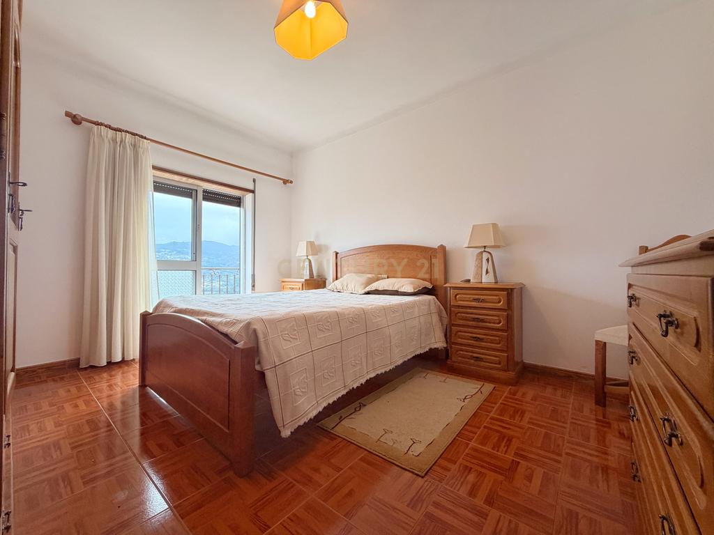 O piso superior é dedicado à zona privada da casa, dispondo de quatro quartos, dois halls de circulação e uma casa de banho completa. Dois dos quartos têm acesso direto a uma varanda, ideal para desfrutar da vista e da tranquilidade da envolvente natural, criando um espaço perfeito para relaxar.