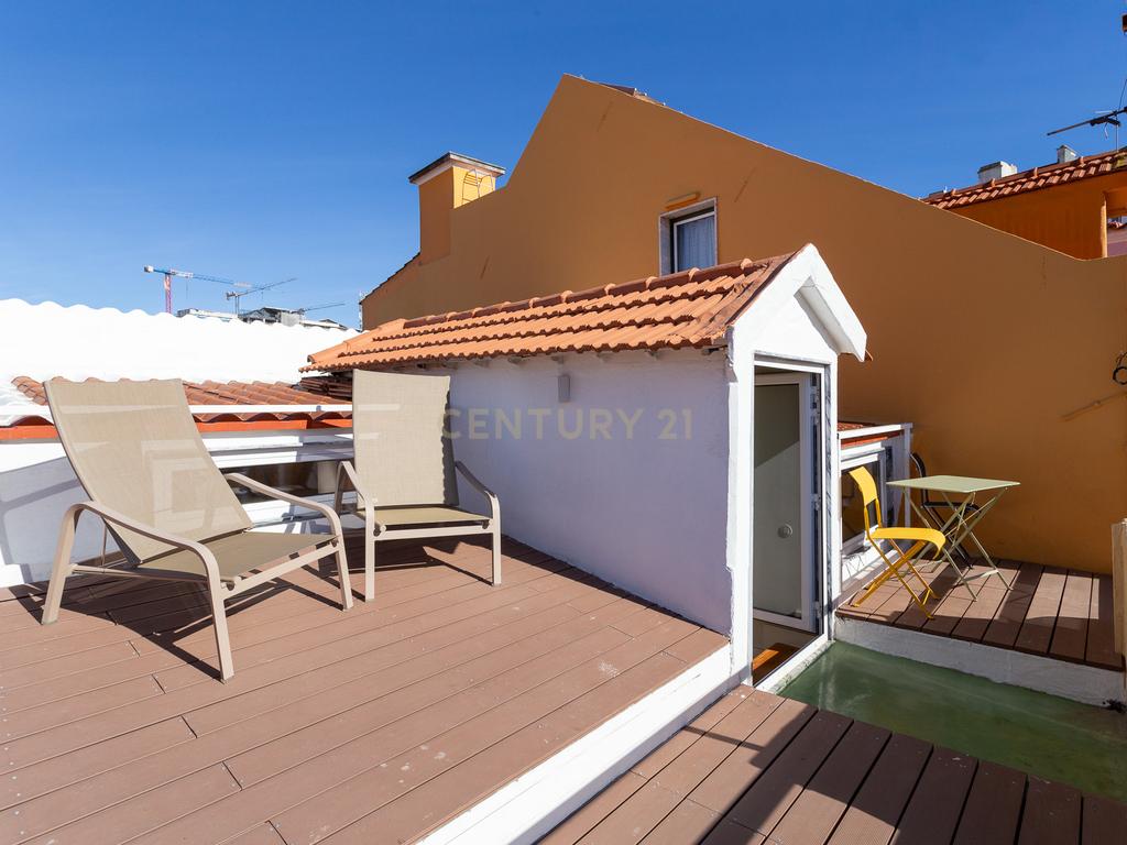 This apartment, which occupies the entire top floor of a building with a tiled facade, has just been completely renovated and was idealized for those who want to live right in the center of Lisbon, but still want comfort and privacy.