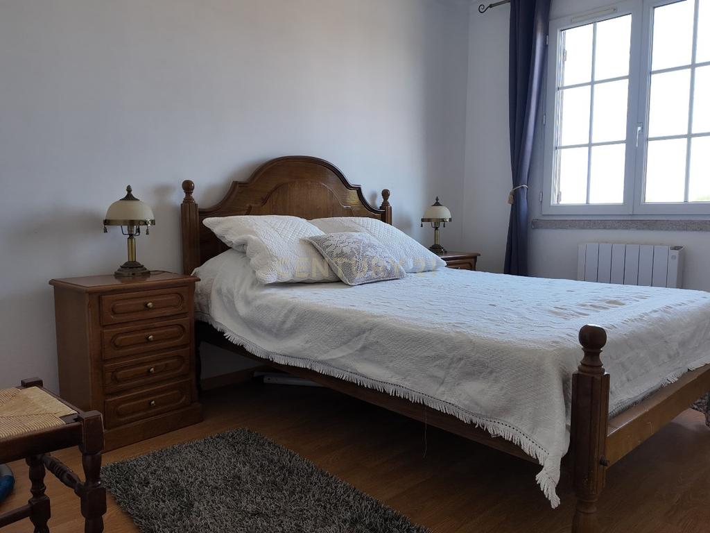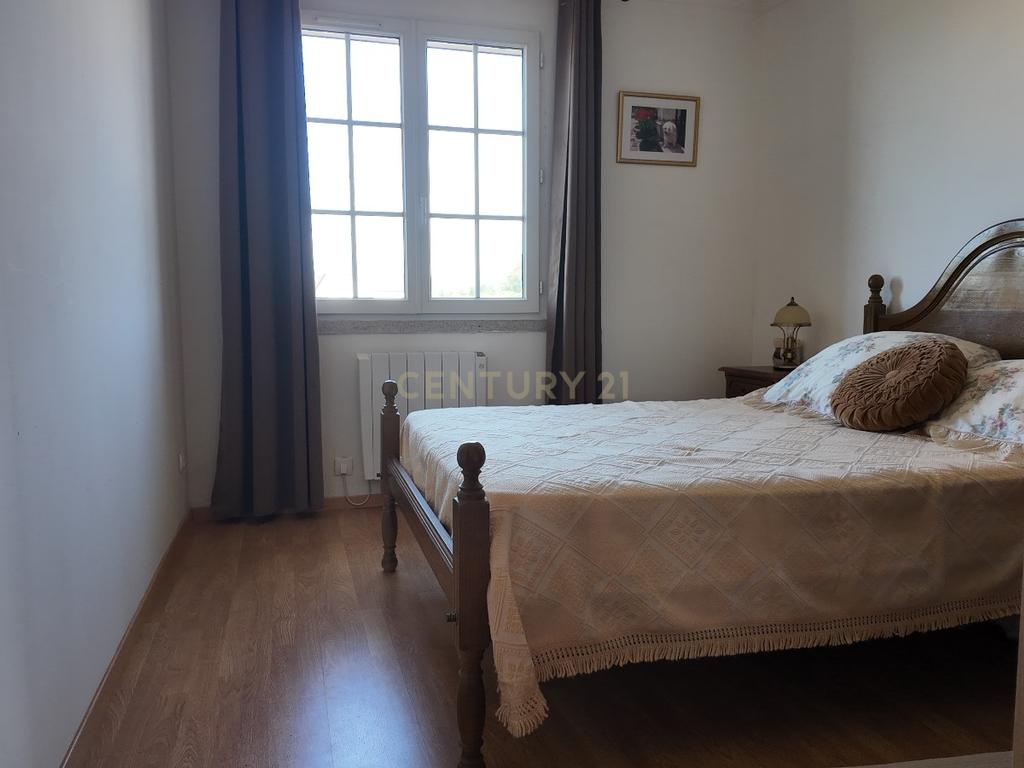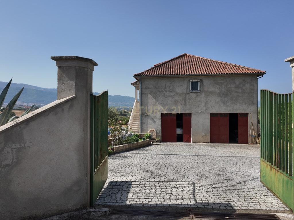 No piso inferior, a moradia dispõe de uma garagem ampla que se estende por toda a área da casa, oferecendo espaço generoso para estacionamento, arrumos e zona de apoio.