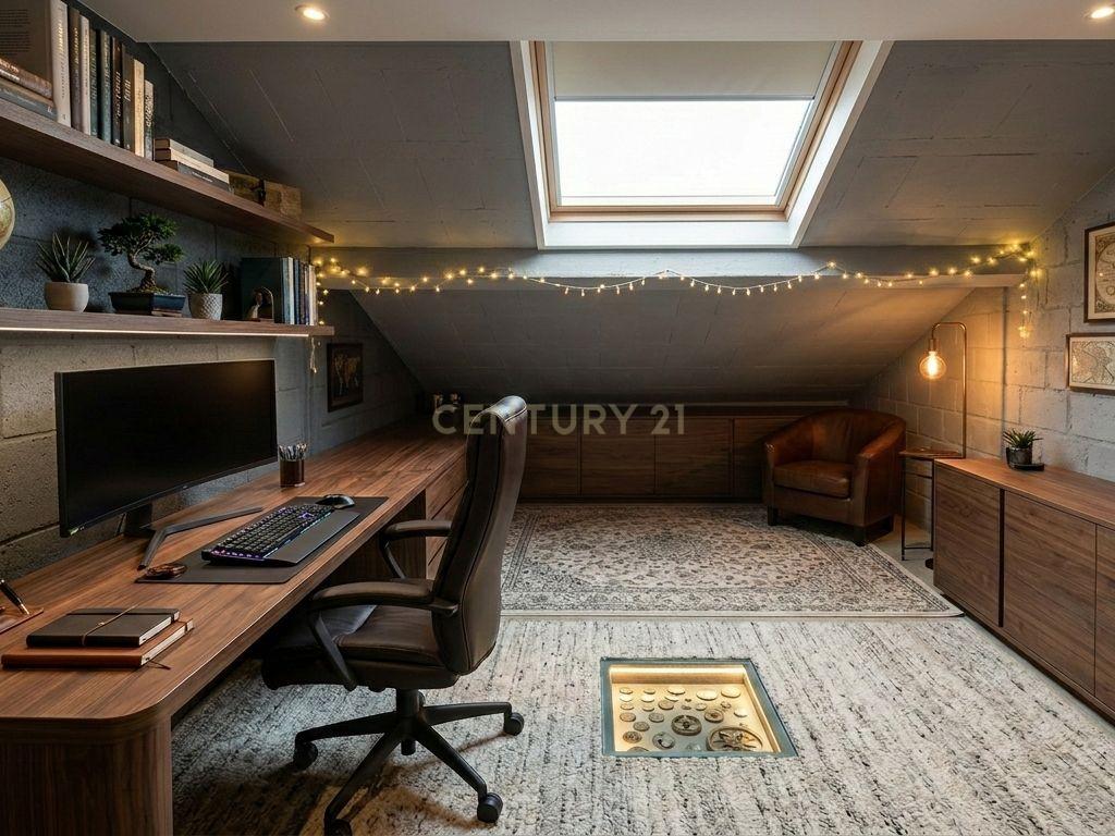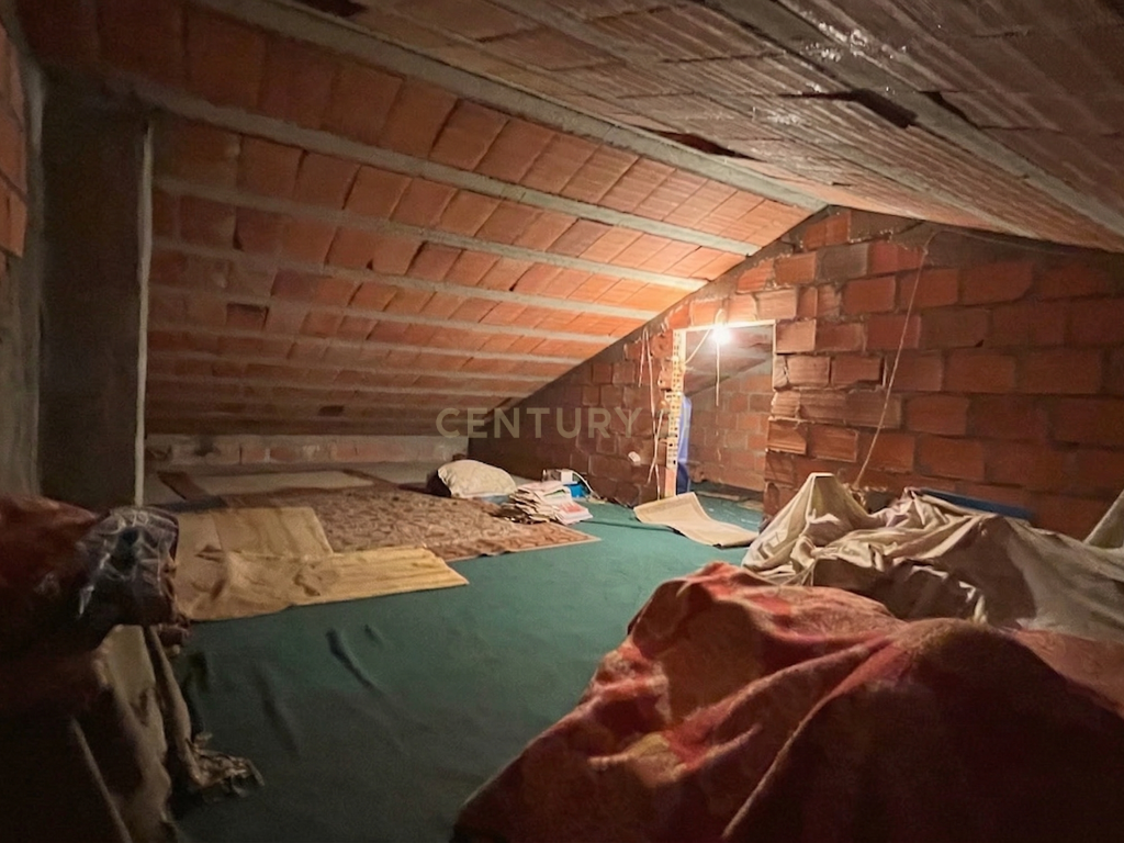 A casa dispõe de 2 quartos, 1 casa de banho, uma sala de estar luminosa com lareira e uma cozinha funcional. Todas as janelas tem vidros duplos, permitindo que o ruido fique do lado de fora e o ambiente de calmaria predomine no interior. O portão de entrada do carro é automático. Os espaços exteriores incluem varandas, um pátio e um jardim, perfeitos para desfrutar de momentos ao ar livre. Com acabamentos em taco e azulejo, a casa também conta com um sótão que pode ser convertido em amplo escritório ou dois quartos (foto modelo) e uma garagem para dois carros e com energia própria, ideal para quem tem ou pensa ter carro elétrico, proporcionando espaço adicional e comodidade.