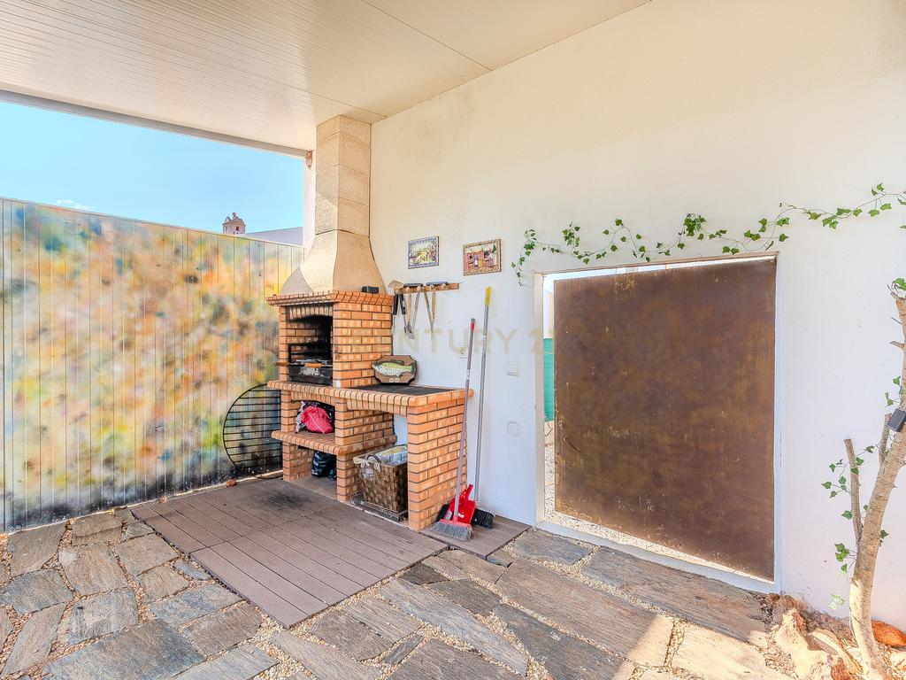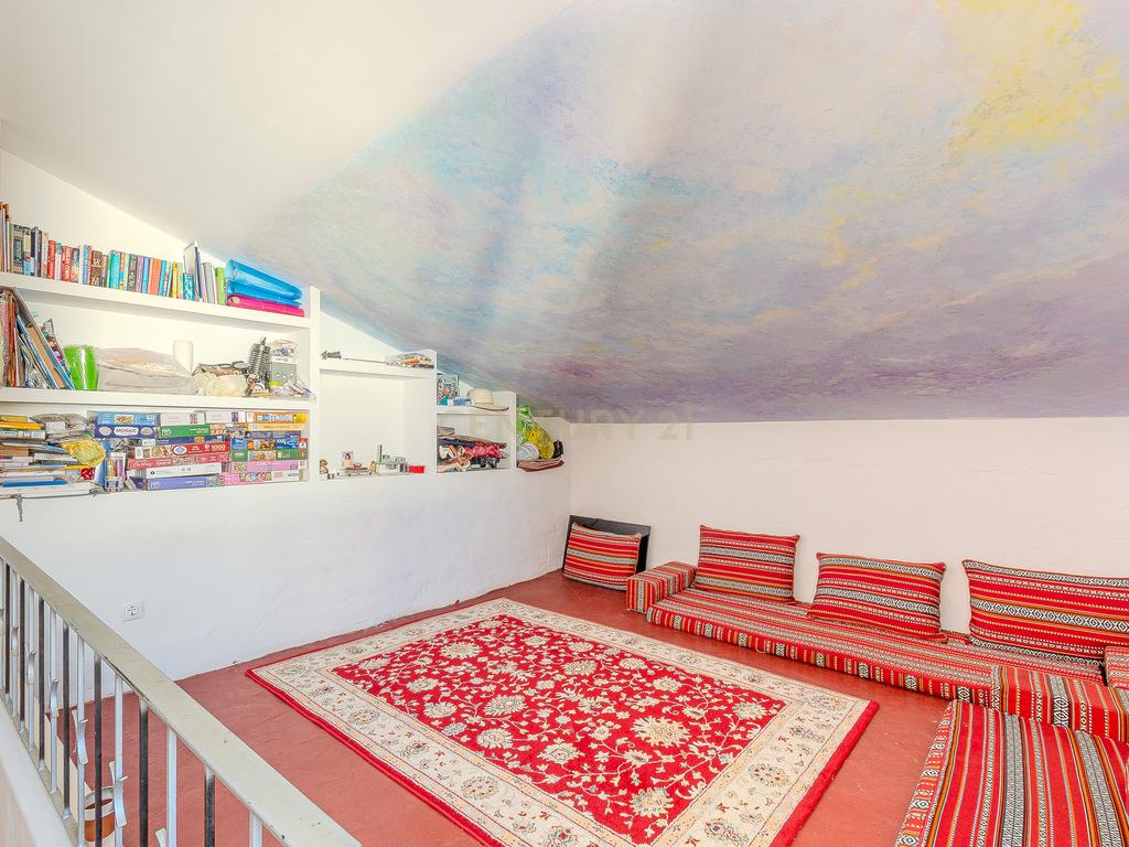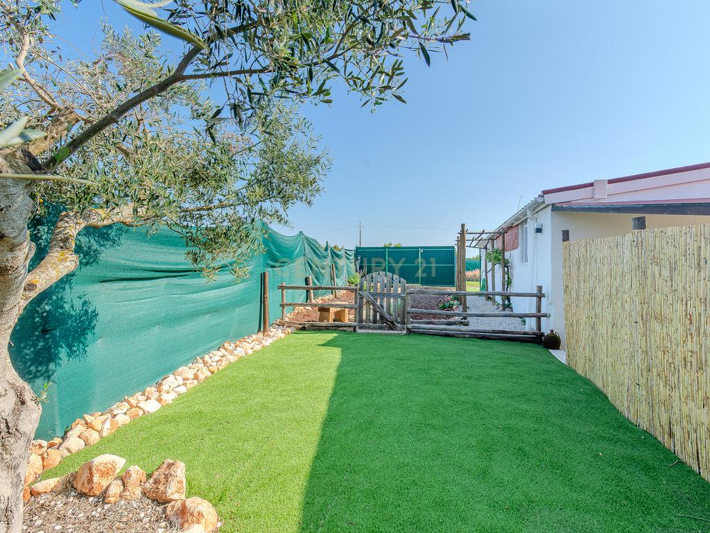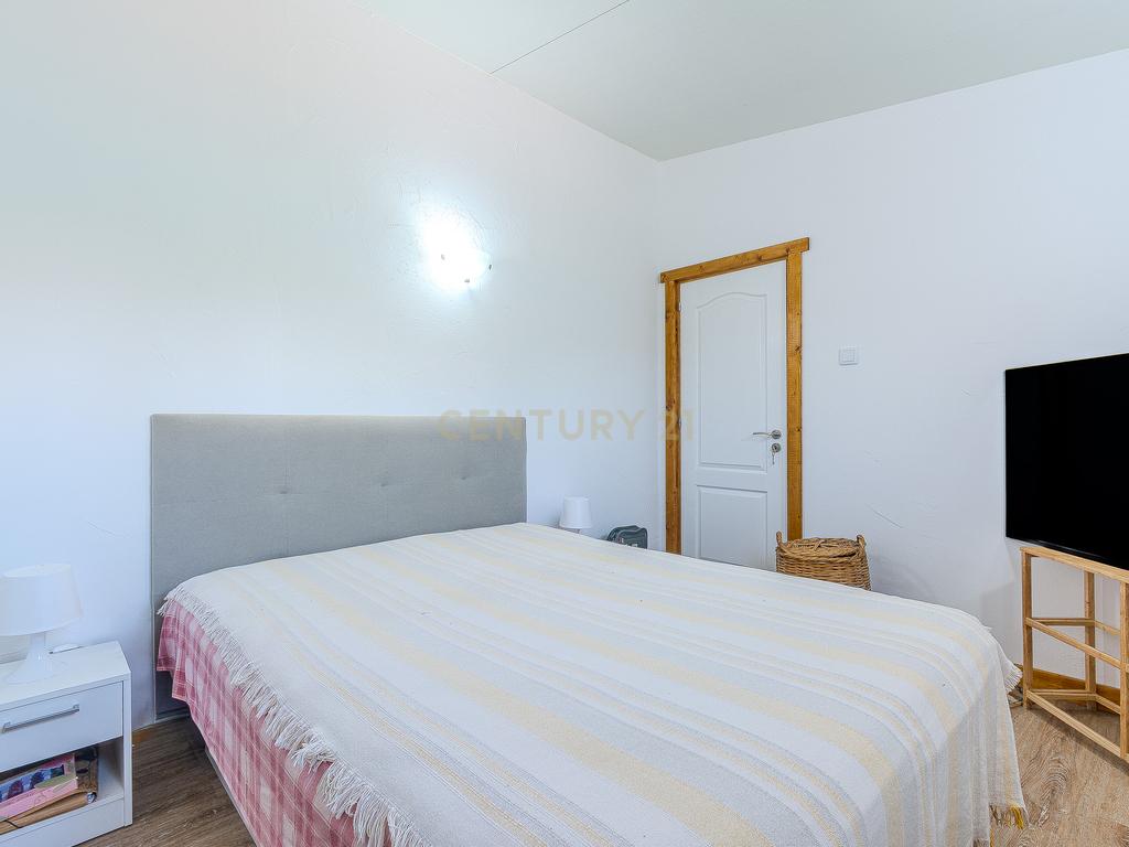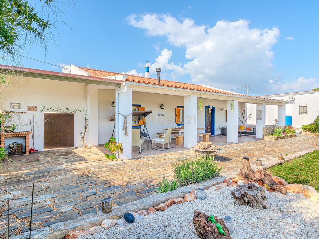 A moradia principal, de apenas um piso térreo, é composta por 3 quartos, um deles em suite, um total de 2 WC, uma sala de estar, uma sala de jantar, uma mesanine e cozinha totalmente equipada.