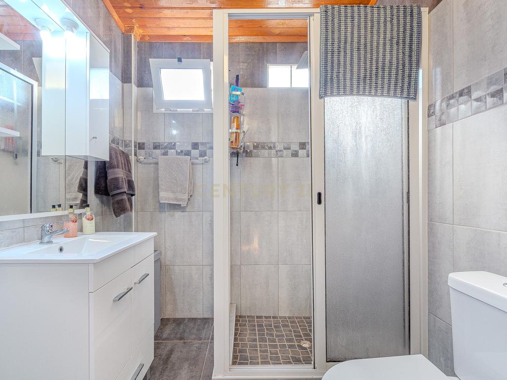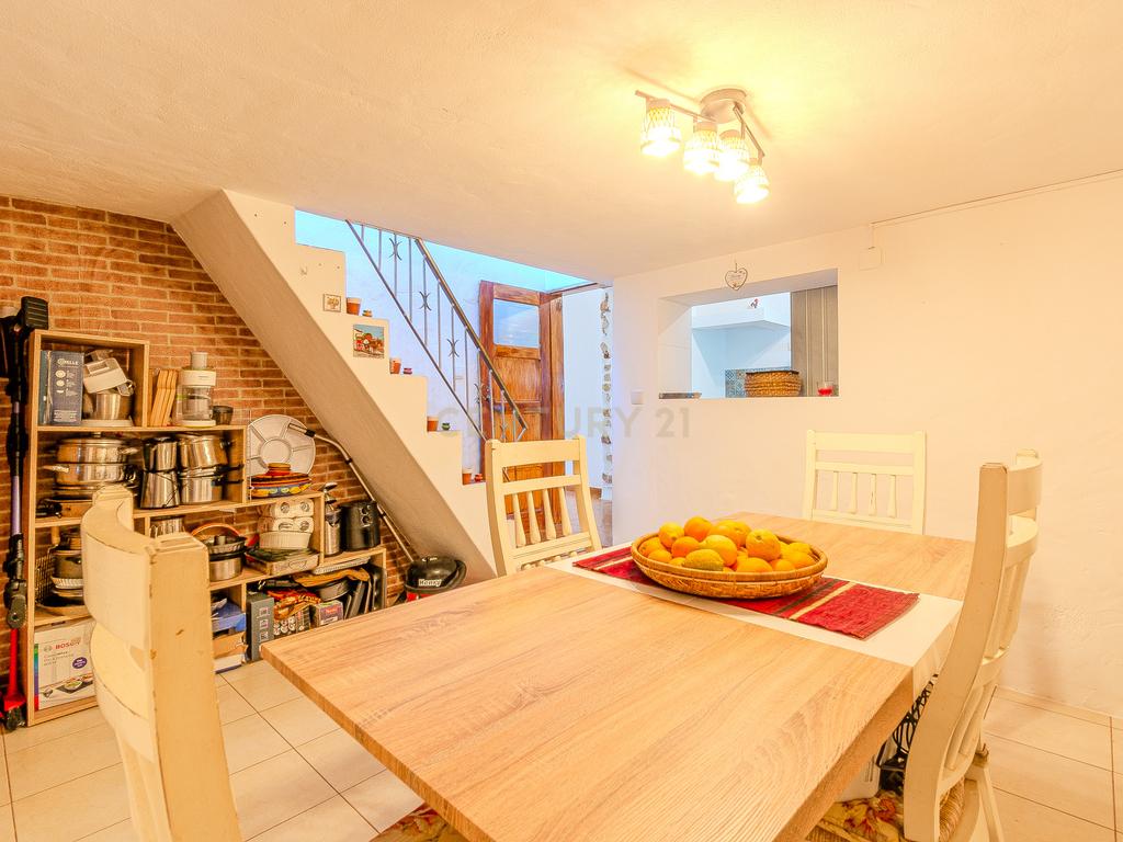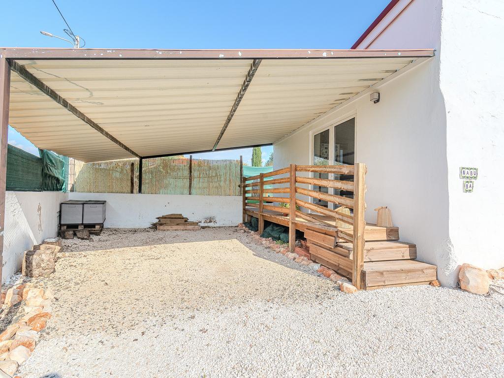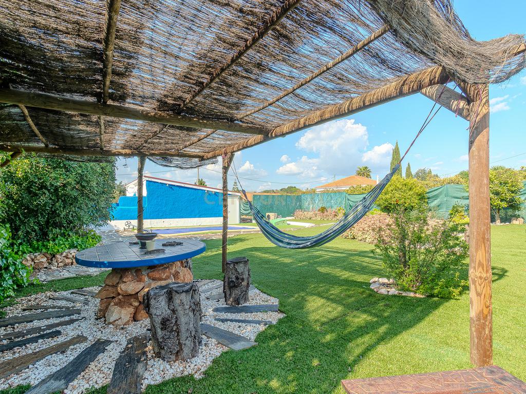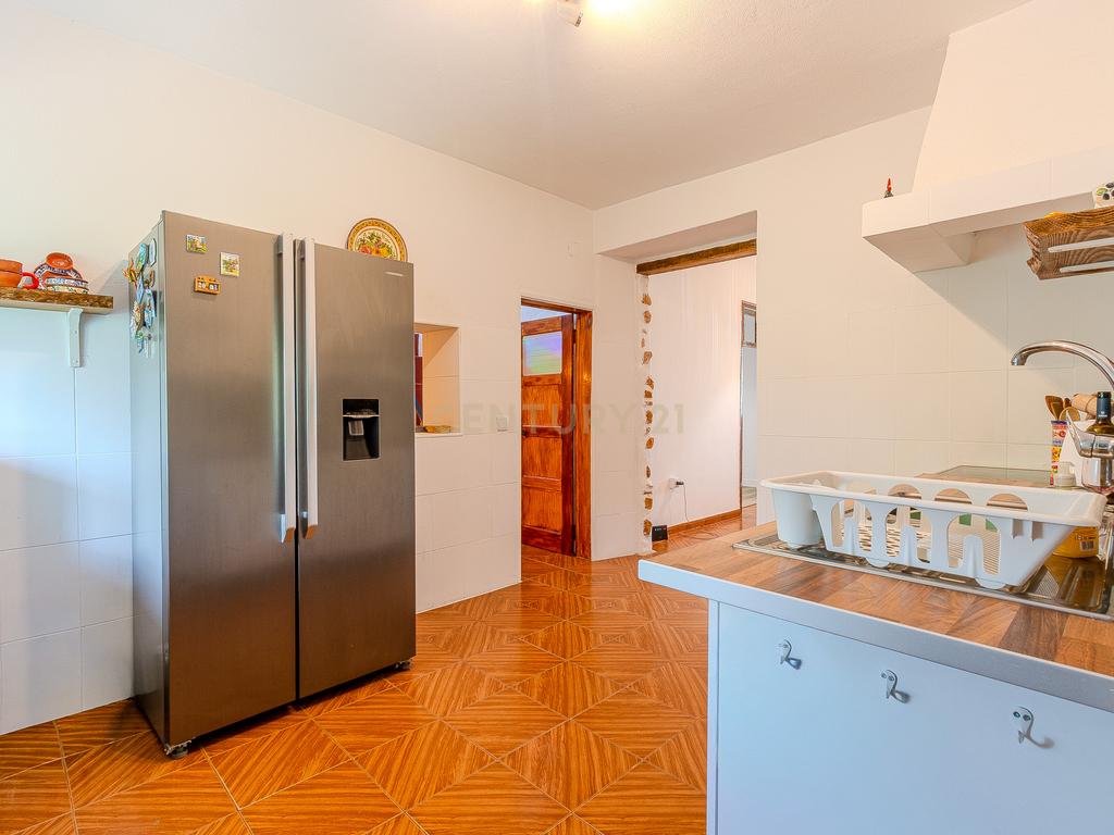 A moradia principal, de apenas um piso térreo, é composta por 3 quartos, um deles em suite, um total de 2 WC, uma sala de estar, uma sala de jantar, uma mesanine e cozinha totalmente equipada.
