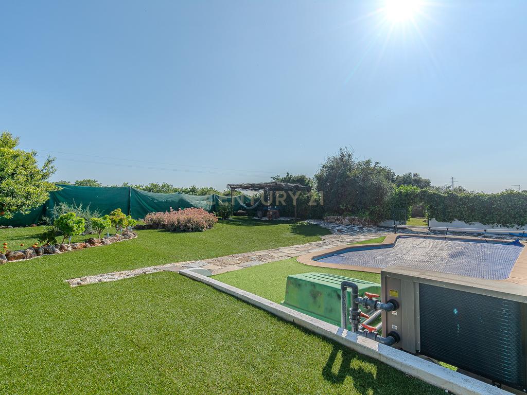 São 1075 m2 de área de terreno, composto maioritariamente por espaços verdes cuidadosamente cuidados, espaço de estacionamento para 5 a 6 viaturas, e ainda uma piscina de água aquecida virada a sul beneficiando de uma exposição solar durante todo o dia.