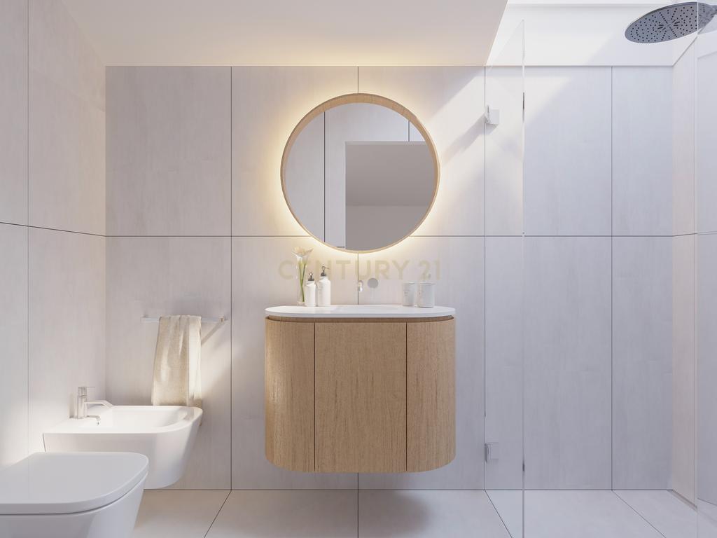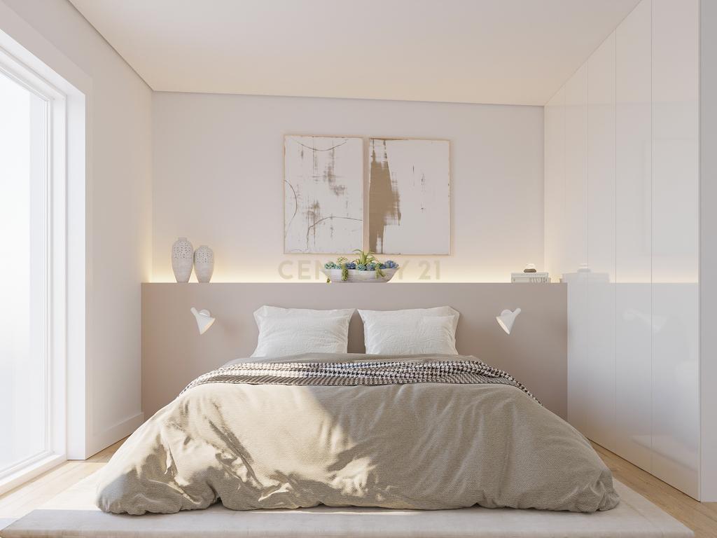 Os quartos estão virados a Este e a zona social (cozinha, sala de estar e sala de jantar), com um conceito de plano aberto, a Oeste.