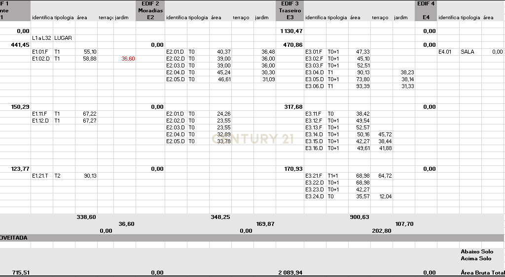 E 5 moradias T1´s+1